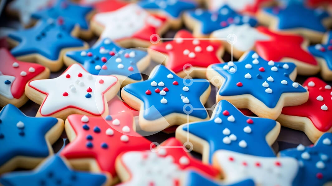 Intra Συλλεκτικό Ξύλινο Παζλ Plywood 4mm - Διακοσμημένα μπισκότα 4ης Ιουλίου με κόκκινα, λευκά και μπλε αστέρια Σε Ξύλινο Κουτί - Διαστάσεις: 10x10 cm – 25 κομμάτια