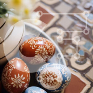 Intra Συλλεκτικό Ξύλινο Παζλ Plywood 4mm - Διακοσμημένα Πασχαλινά αυγά και λουλούδια σε ένα τραπέζι Σε Ξύλινο Κουτί - Διαστάσεις: 10x10 cm – 25 κομμάτια