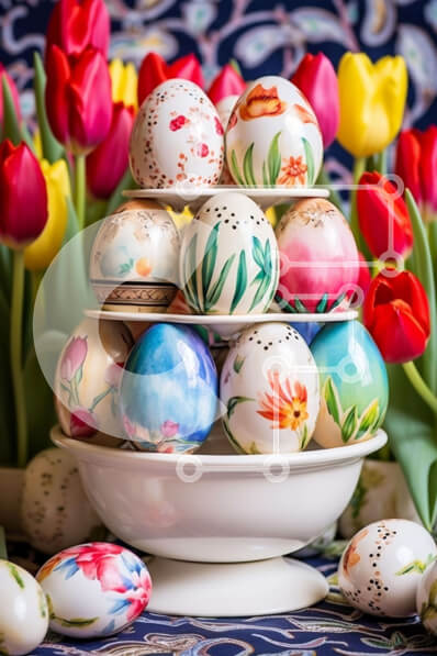 Intra Συλλεκτικό Ξύλινο Παζλ Plywood 4mm - Διακοσμημένα Πασχαλινά αυγά και πολύχρωμες τουλίπες σε λευκό μπολ Σε Ξύλινο Κουτί - Διαστάσεις: 10x10 cm – 25 κομμάτια