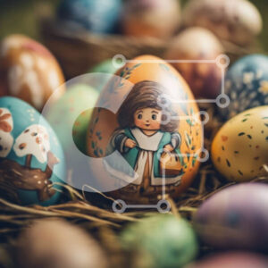 Intra Συλλεκτικό Ξύλινο Παζλ Plywood 4mm - Διακοσμημένα Πασχαλινά αυγά σε ένα σωρό από άχυρο Σε Ξύλινο Κουτί - Διαστάσεις: 10x10 cm – 25 κομμάτια