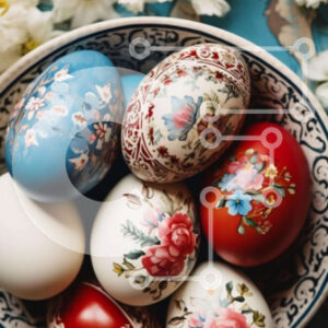 Intra Συλλεκτικό Ξύλινο Παζλ Plywood 4mm - Διακοσμημένα Πασχαλινά αυγά σε λευκά πιάτα με λουλούδια Σε Ξύλινο Κουτί - Διαστάσεις: 10x10 cm – 25 κομμάτια