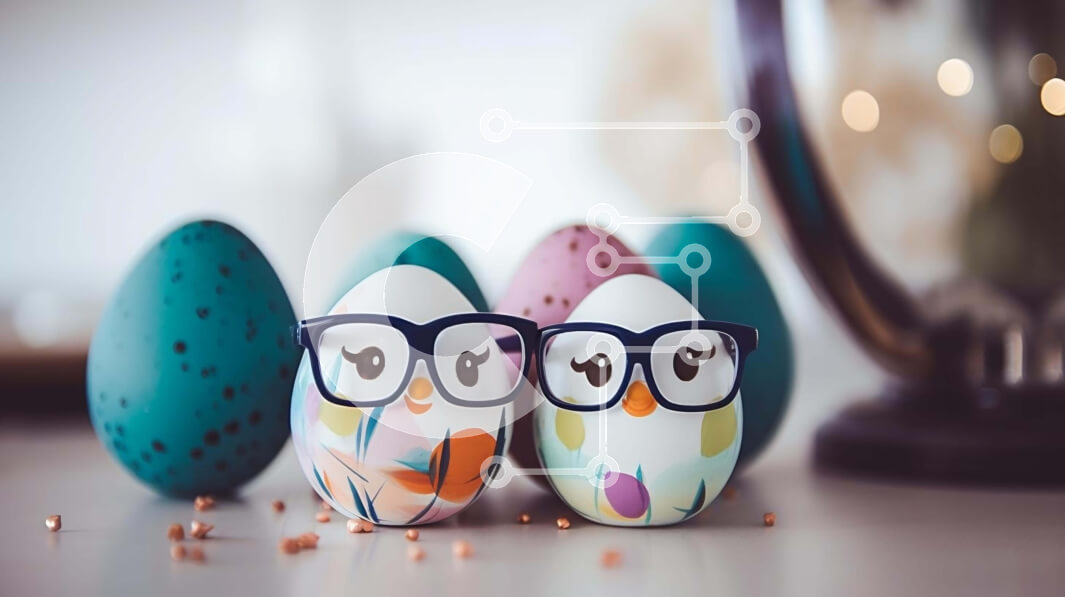 Intra Συλλεκτικό Ξύλινο Παζλ Plywood 4mm - Διακοσμημένα πασχαλινά αυγά με ποτήρια κουκουβάγιας Σε Ξύλινο Κουτί - Διαστάσεις: 10x10 cm – 25 κομμάτια