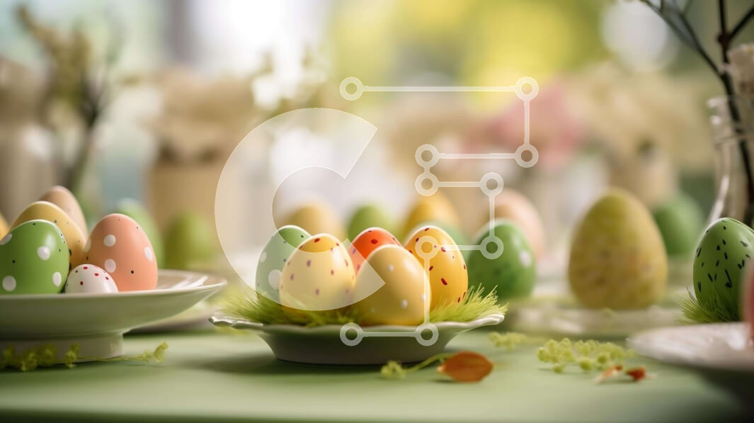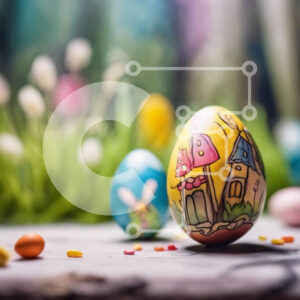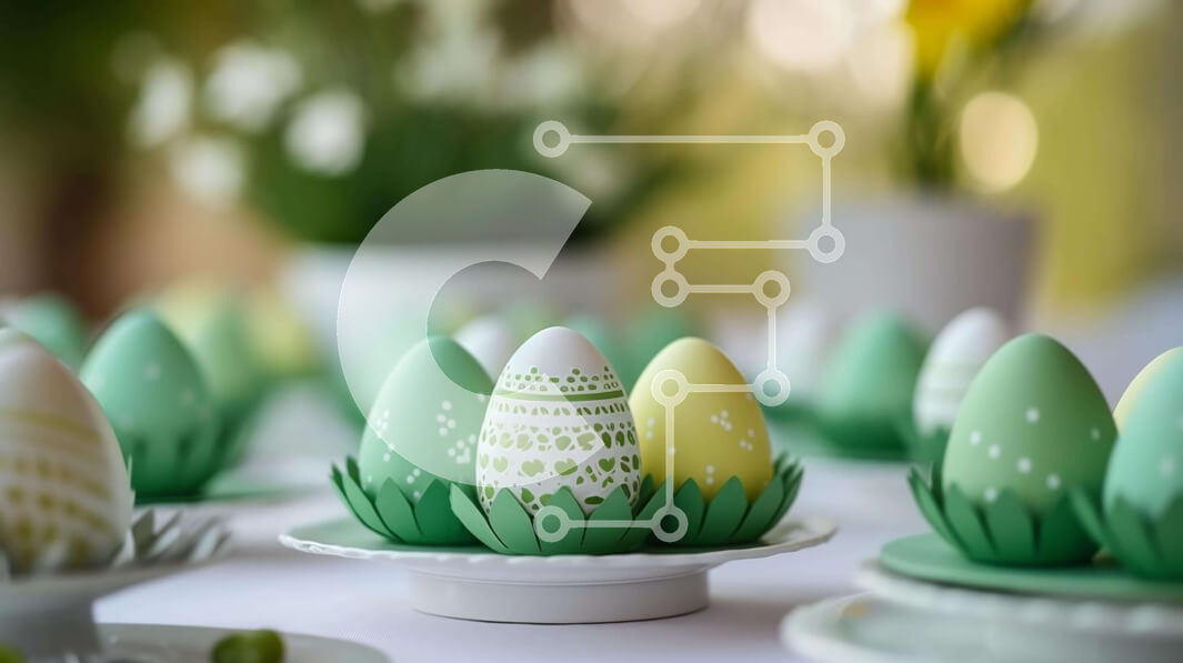 Intra Συλλεκτικό Ξύλινο Παζλ Plywood 4mm - Διακοσμημένα Πασχαλινά αυγά σε τραπέζι με λουλούδια και πράσινο Σε Ξύλινο Κουτί - Διαστάσεις: 10x10 cm – 25 κομμάτια