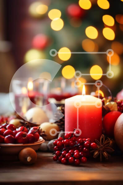 Intra Συλλεκτικό Ξύλινο Παζλ Plywood 4mm - Διακοσμήσεις τραπεζιού με Χριστουγεννιάτικα κεριά, μούρα και κουκουνάρια Σε Ξύλινο Κουτί - Διαστάσεις: 10x10 cm – 25 κομμάτια