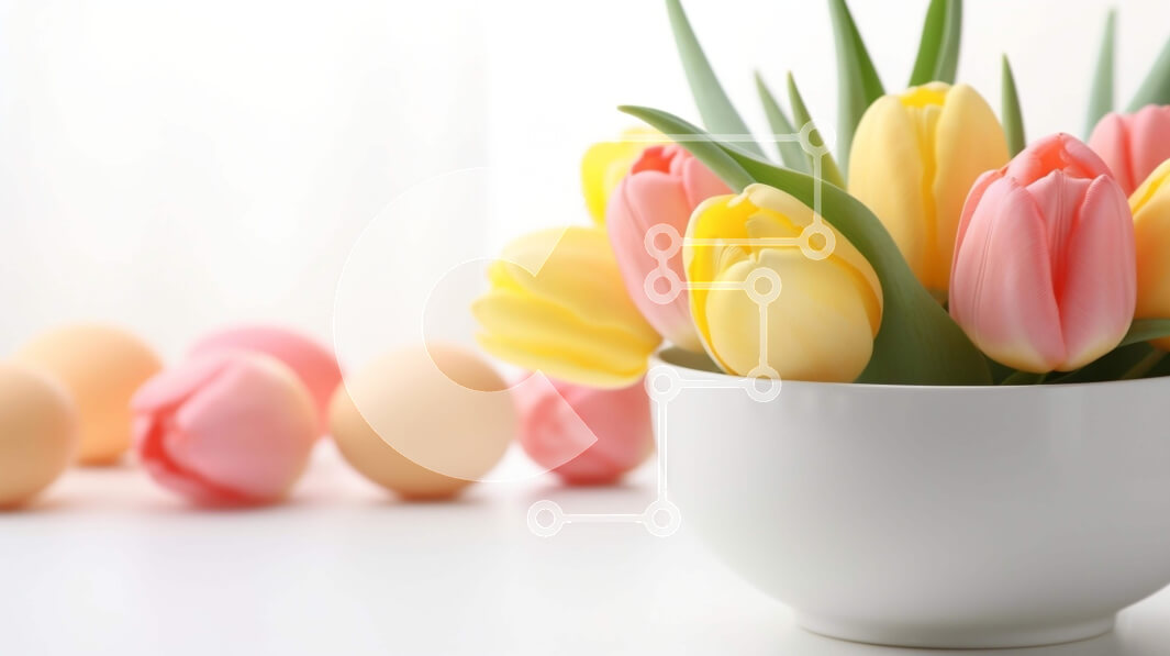 Intra Συλλεκτικό Ξύλινο Παζλ Plywood 4mm - Διακόσμηση πασχαλινών τραπεζιών με τουλίπες και πασχαλινά αυγά Σε Ξύλινο Κουτί - Διαστάσεις: 10x10 cm – 25 κομμάτια