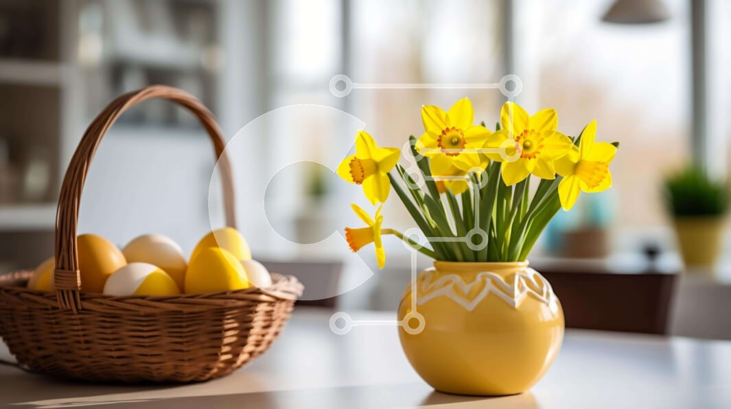 Intra Συλλεκτικό Ξύλινο Παζλ Plywood 4mm - Διακόσμηση πασχαλινών τραπεζιών με κίτρινο βάζο και ασφόδελους Σε Ξύλινο Κουτί - Διαστάσεις: 10x10 cm – 25 κομμάτια