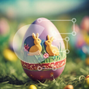Intra Συλλεκτικό Ξύλινο Παζλ Plywood 4mm - Διακόσμηση Πασχαλινών αυγών με κουνελάκια στο χορτάρι Σε Ξύλινο Κουτί - Διαστάσεις: 10x10 cm – 25 κομμάτια