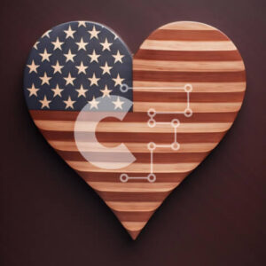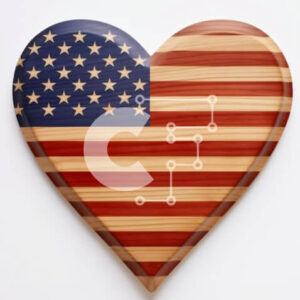 Intra Συλλεκτικό Ξύλινο Παζλ Plywood 4mm - Διακόσμηση σημαίας Ηνωμένων Πολιτειών σε σχήμα καρδιάς Σε Ξύλινο Κουτί - Διαστάσεις: 10x10 cm – 25 κομμάτια