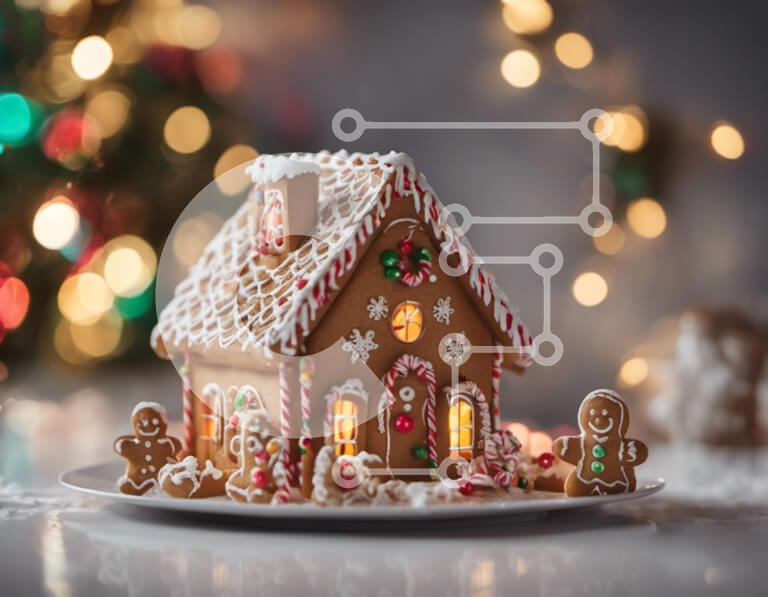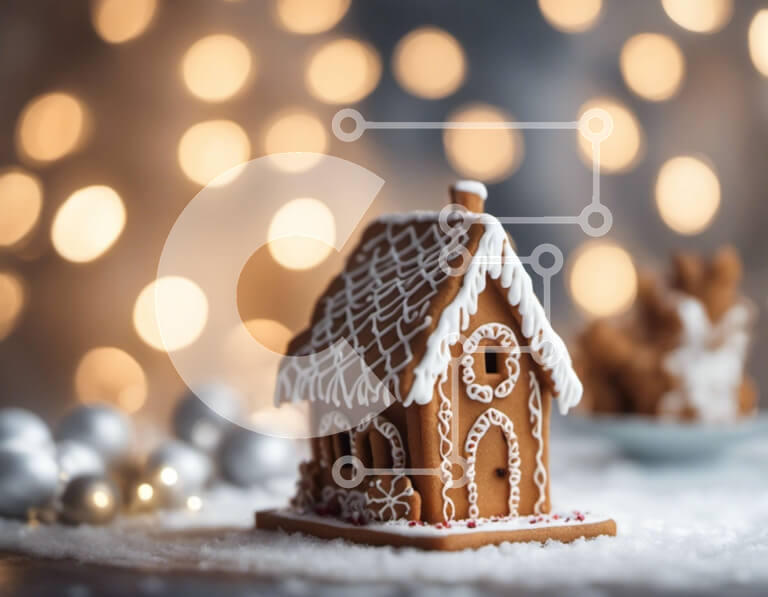 Intra Συλλεκτικό Ξύλινο Παζλ Plywood 4mm - Διακόσμηση σπιτιού με μελόψωμο με ζαχαρωτά και νιφάδες χιονιού Σε Ξύλινο Κουτί - Διαστάσεις: 10x10 cm – 25 κομμάτια