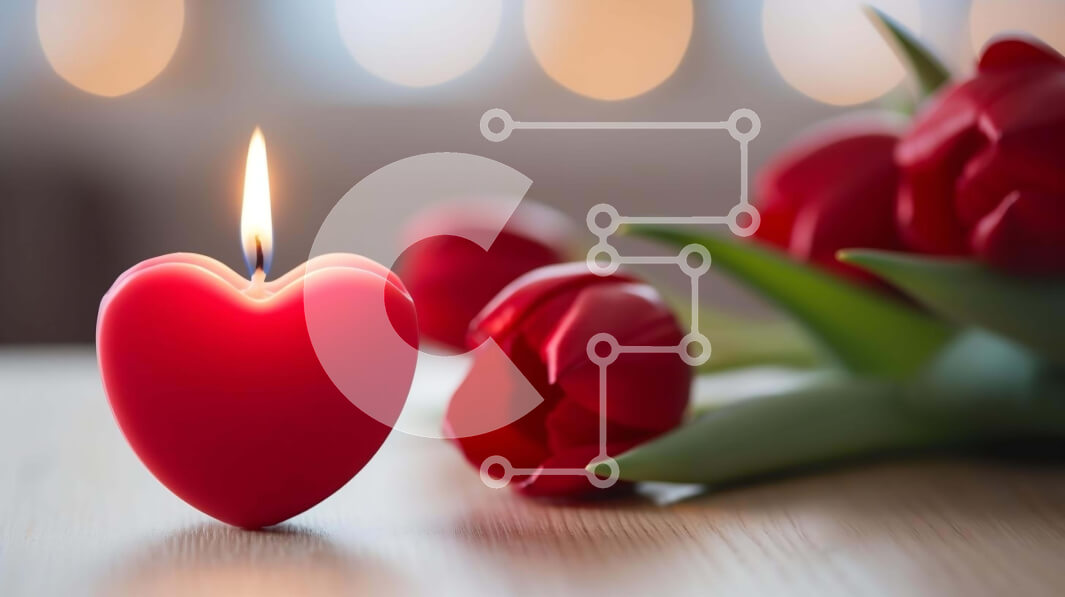 Intra Συλλεκτικό Ξύλινο Παζλ Plywood 4mm - Διακόσμηση του Αγίου Βαλεντίνου με κερί σε σχήμα καρδιάς και κόκκινες τουλίπες Σε Ξύλινο Κουτί - Διαστάσεις: 10x10 cm – 25 κομμάτια