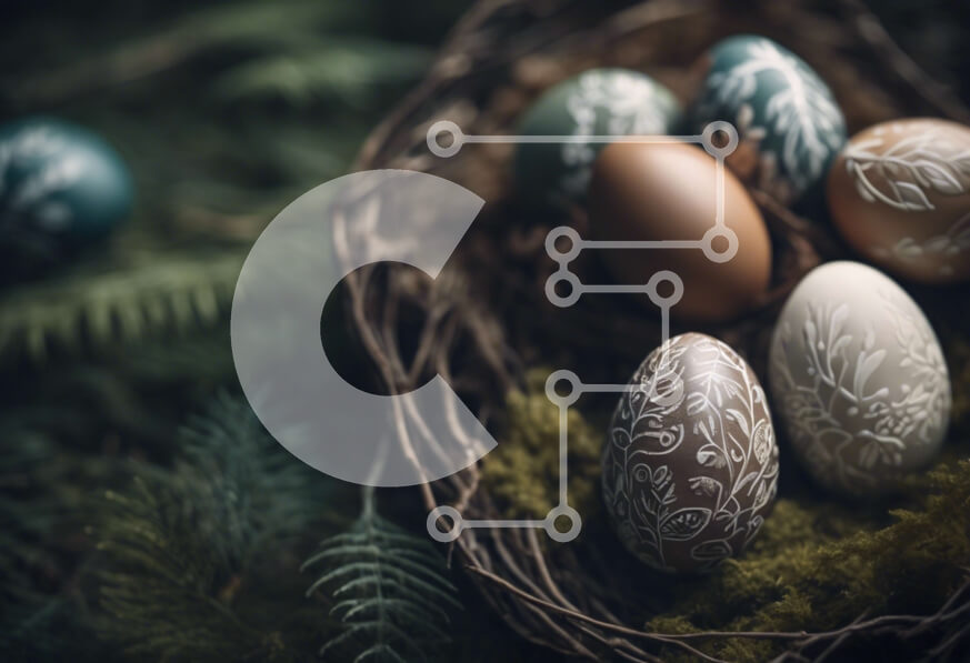 Intra Συλλεκτικό Ξύλινο Παζλ Plywood 4mm - Διακοσμητικά Πασχαλινά αυγά σε καλάθι με βρύα και φτέρες Σε Ξύλινο Κουτί - Διαστάσεις: 10x10 cm – 25 κομμάτια