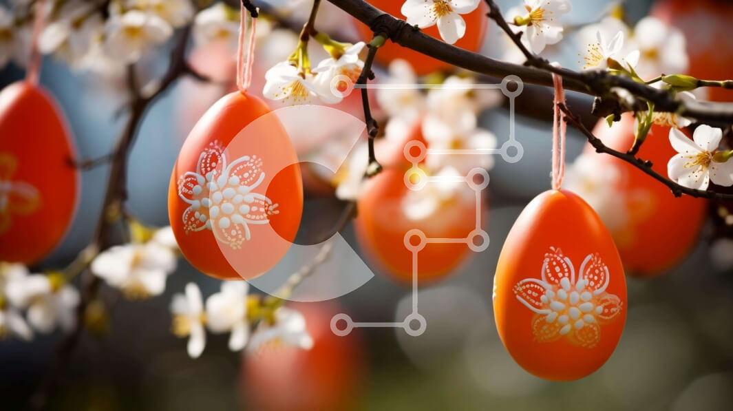 Intra Συλλεκτικό Ξύλινο Παζλ Plywood 4mm - Διακοσμητικά Πασχαλινά αυγά που κρέμονται από ανθισμένο κλαδί Σε Ξύλινο Κουτί - Διαστάσεις: 10x10 cm – 25 κομμάτια