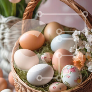 Intra Συλλεκτικό Ξύλινο Παζλ Plywood 4mm - Διακοσμητικά Πασχαλινά αυγά σε καλάθι με λουλούδια Σε Ξύλινο Κουτί - Διαστάσεις: 10x10 cm – 25 κομμάτια