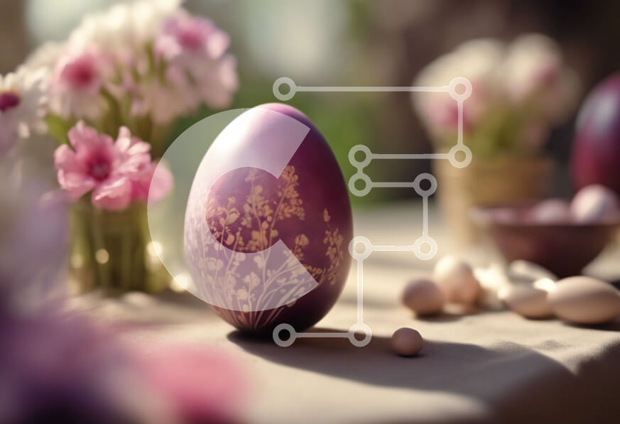 Intra Συλλεκτικό Ξύλινο Παζλ Plywood 4mm - Δύο μωβ Πασχαλινά αυγά με λουλούδια και διακοσμητικά Σε Ξύλινο Κουτί - Διαστάσεις: 10x10 cm – 25 κομμάτια