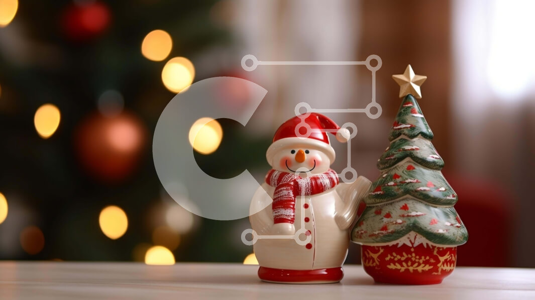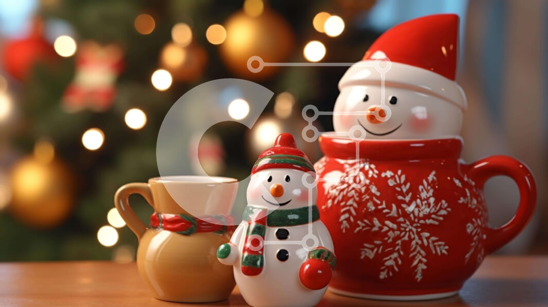 Intra Συλλεκτικό Ξύλινο Παζλ Plywood 4mm - Ειδώλια χιονάνθρωπου με χριστουγεννιάτικο δέντρο και κούπες καφέ Σε Ξύλινο Κουτί - Διαστάσεις: 10x10 cm – 25 κομμάτια