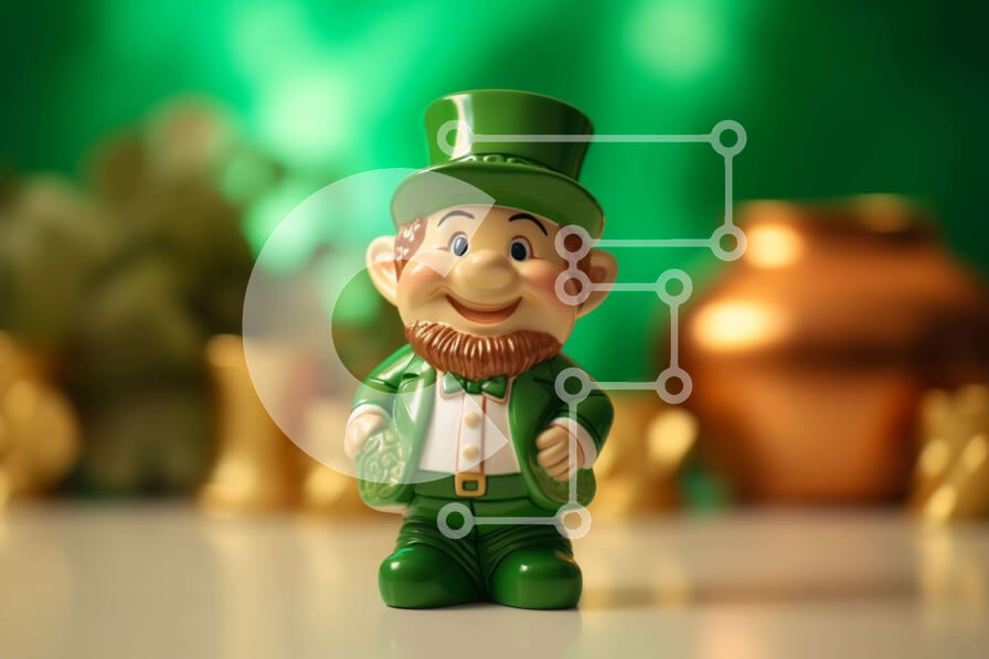 Intra Συλλεκτικό Ξύλινο Παζλ Plywood 4mm - Ειδώλιο Leprechaun σε πράσινα τριφύλλια για την ημέρα του Αγίου Πατρικίου Σε Ξύλινο Κουτί - Διαστάσεις: 10x10 cm – 25 κομμάτια