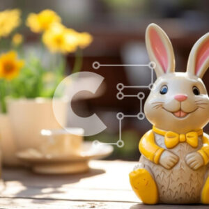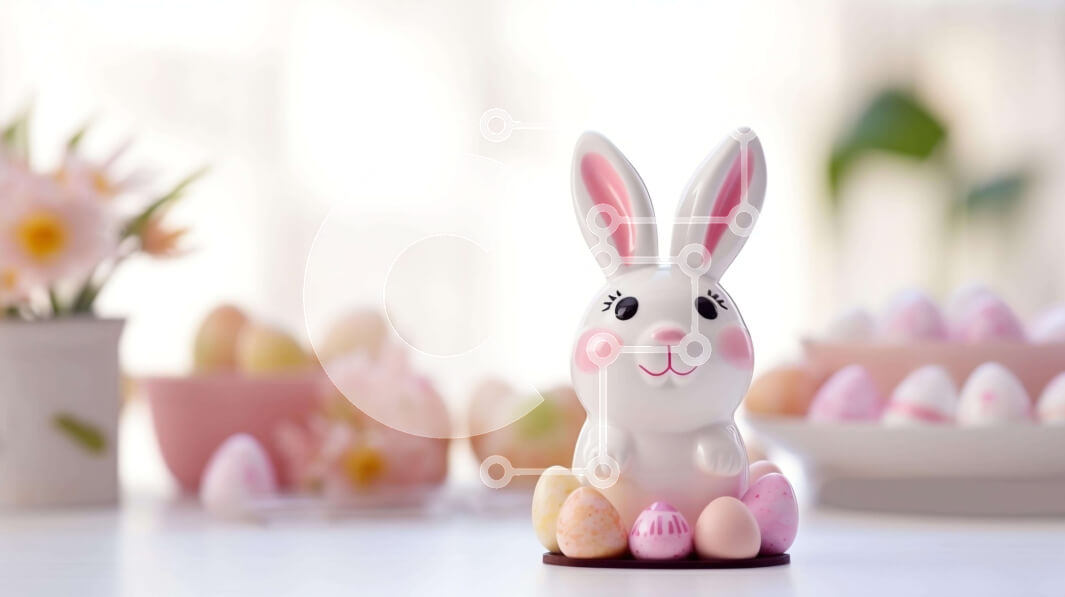 Intra Συλλεκτικό Ξύλινο Παζλ Plywood 4mm - Ειδώλιο λαγουδάκι του Πάσχα σε τραπέζι εξωτερικού χώρου με λουλούδια Σε Ξύλινο Κουτί - Διαστάσεις: 10x10 cm – 25 κομμάτια