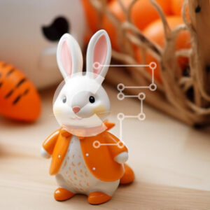 Intra Συλλεκτικό Ξύλινο Παζλ Plywood 4mm - Ειδώλιο λαγουδάκι του Πάσχα σε ξύλινο τραπέζι με πορτοκάλια Σε Ξύλινο Κουτί - Διαστάσεις: 10x10 cm – 25 κομμάτια