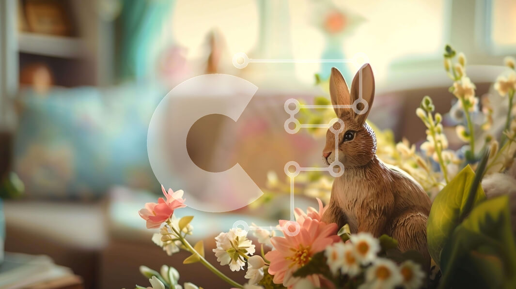 Intra Συλλεκτικό Ξύλινο Παζλ Plywood 4mm - Ειδώλιο λαγουδάκι του Πάσχα σε τραπέζι εξωτερικού χώρου με φυτά και λουλούδια σε γλάστρες Σε Ξύλινο Κουτί - Διαστάσεις: 10x10 cm – 25 κομμάτια