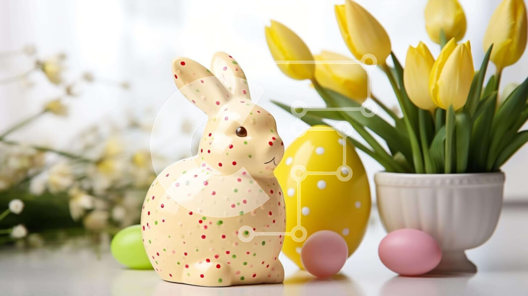 Intra Συλλεκτικό Ξύλινο Παζλ Plywood 4mm - Ειδώλιο λαγουδάκι του Πάσχα, κίτρινες τουλίπες και πασχαλινά αυγά Σε Ξύλινο Κουτί - Διαστάσεις: 10x10 cm – 25 κομμάτια