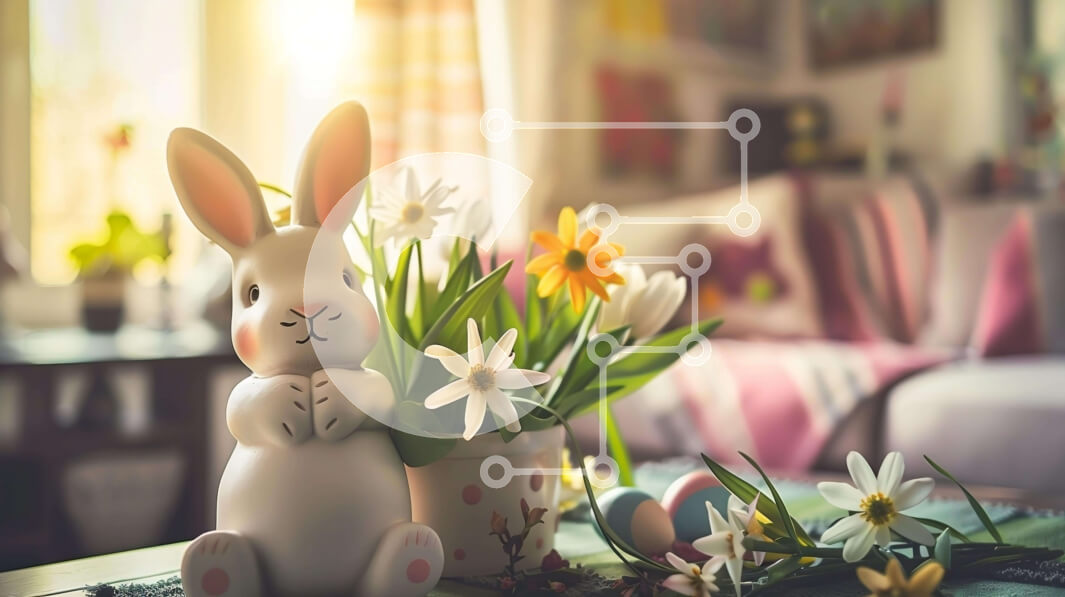 Intra Συλλεκτικό Ξύλινο Παζλ Plywood 4mm - Ειδώλιο λαγουδάκι του Πάσχα σε τραπέζι με θέμα το Πάσχα με λουλούδια και αυγά Σε Ξύλινο Κουτί - Διαστάσεις: 10x10 cm – 25 κομμάτια