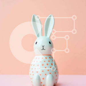 Intra Συλλεκτικό Ξύλινο Παζλ Plywood 4mm - Ειδώλιο λαγουδάκι του Πάσχα σε φόντο πορτοκαλί πουά Σε Ξύλινο Κουτί - Διαστάσεις: 10x10 cm – 25 κομμάτια