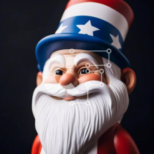 Intra Συλλεκτικό Ξύλινο Παζλ Plywood 4mm - Ειδώλιο παιχνίδι Άγιου Βασίλη με καπέλο και γενειάδα με αμερικανική σημαία Σε Ξύλινο Κουτί - Διαστάσεις: 10x10 cm – 25 κομμάτια