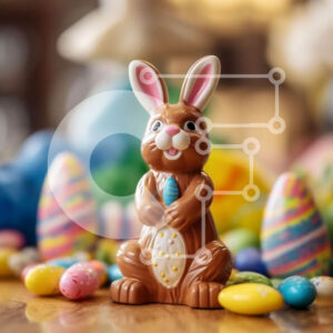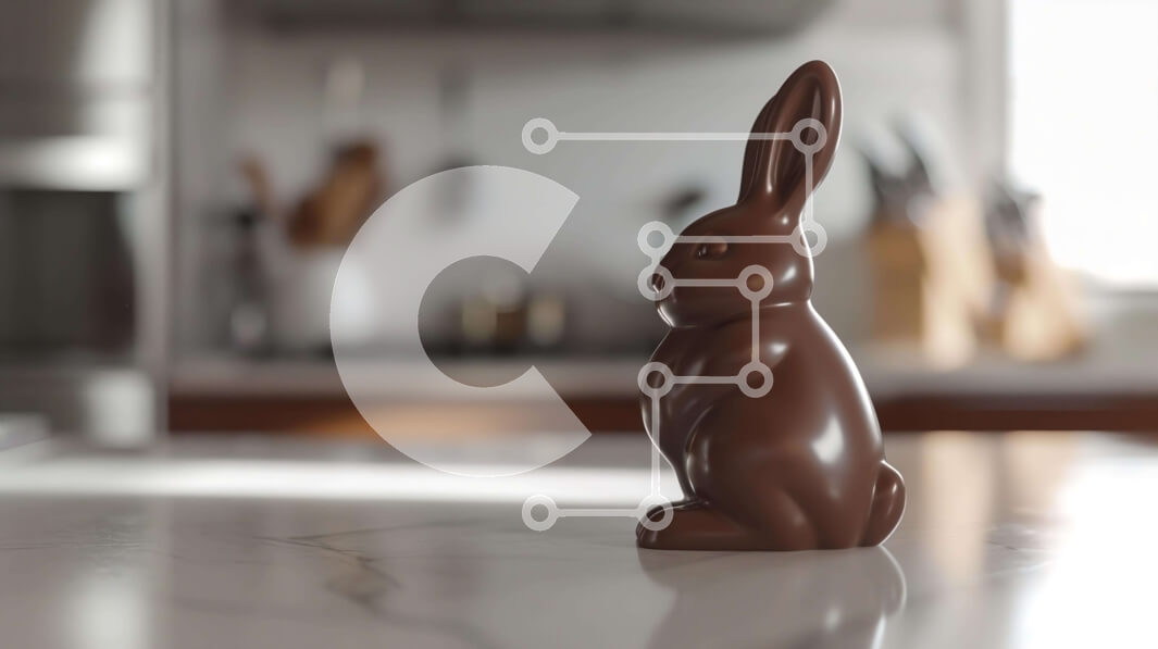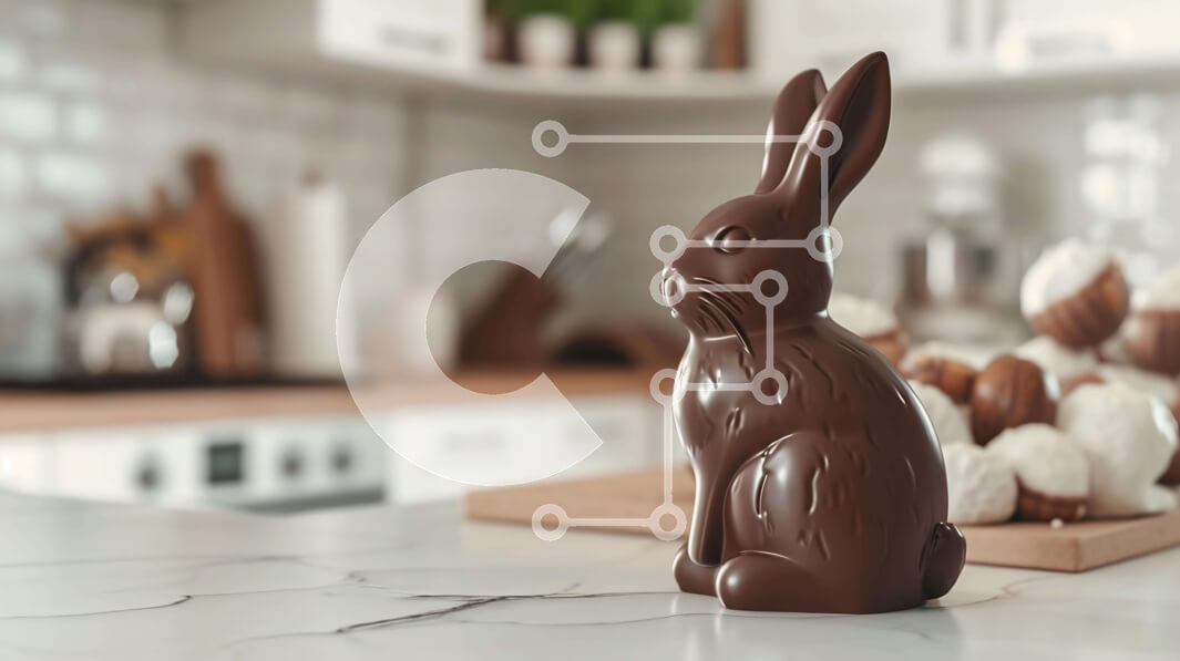 Intra Συλλεκτικό Ξύλινο Παζλ Plywood 4mm - Άγαλμα λαγουδάκι σοκολάτας στον πάγκο της κουζίνας για τον εορτασμό του Πάσχα Σε Ξύλινο Κουτί - Διαστάσεις: 10x10 cm – 25 κομμάτια