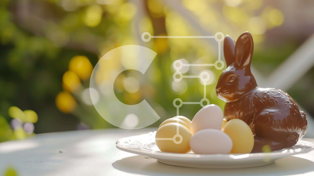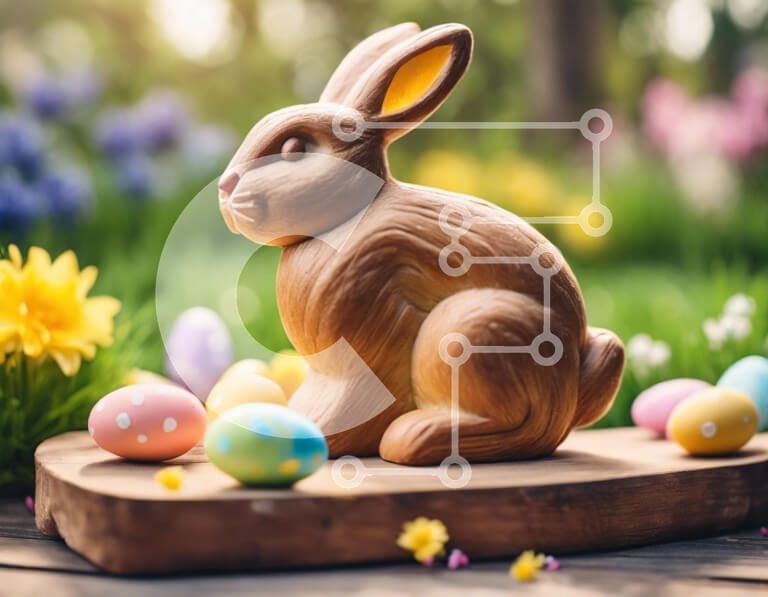 Intra Συλλεκτικό Ξύλινο Παζλ Plywood 4mm - Άγαλμα λαγουδάκι σοκολάτας Πάσχας σε πιάτο γεμάτο αυγά Σε Ξύλινο Κουτί - Διαστάσεις: 10x10 cm – 25 κομμάτια