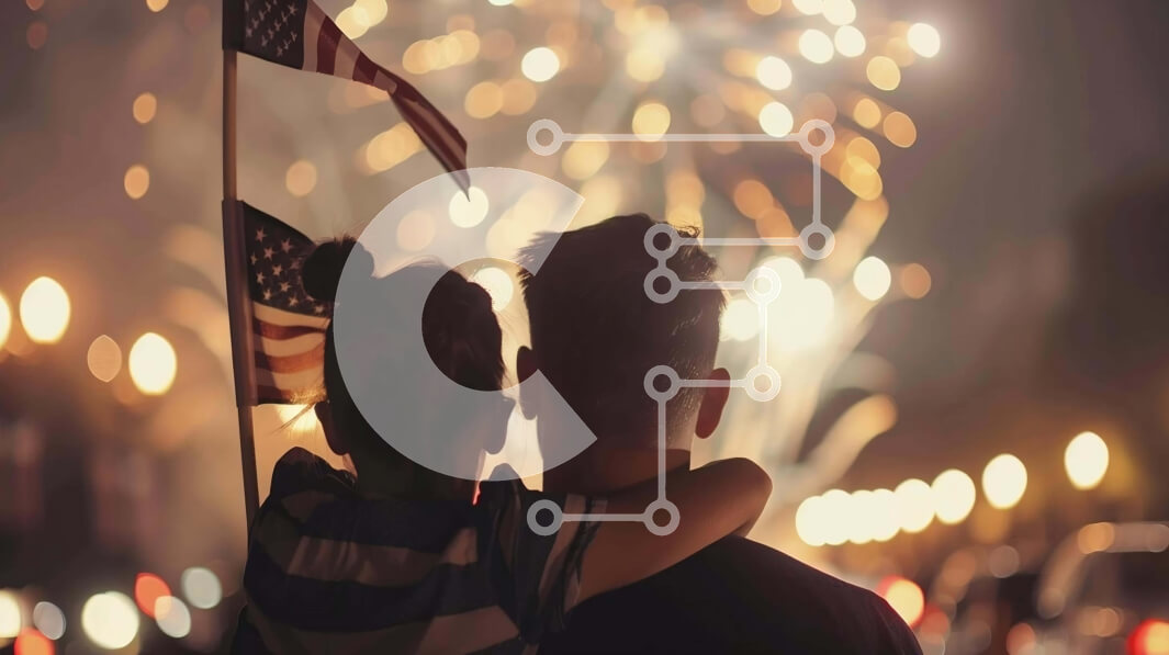Intra Συλλεκτικό Ξύλινο Παζλ Plywood 4mm - Άνδρας και παιδί που γιορτάζουν με αμερικανική σημαία και πυροτεχνήματα Σε Ξύλινο Κουτί - Διαστάσεις: 10x10 cm – 25 κομμάτια