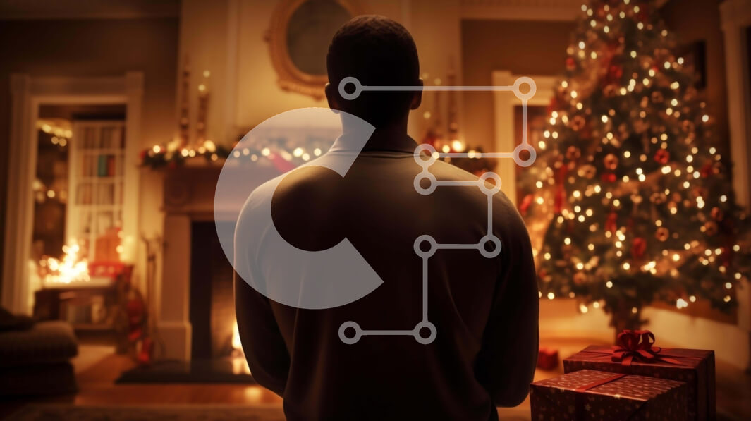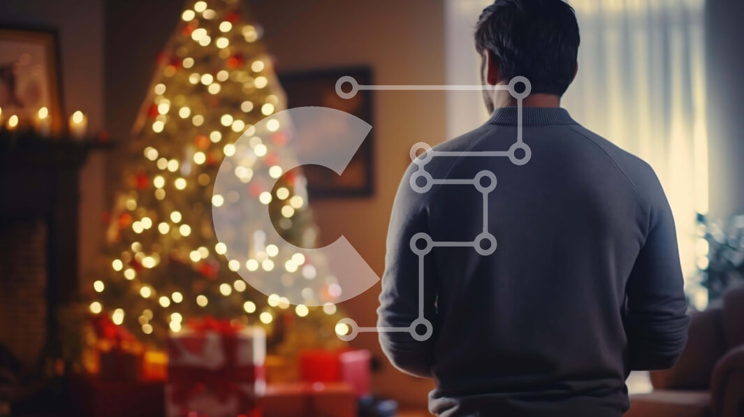 Intra Συλλεκτικό Ξύλινο Παζλ Plywood 4mm - Άνδρας που στέκεται μπροστά από το χριστουγεννιάτικο δέντρο στο σαλόνι Σε Ξύλινο Κουτί - Διαστάσεις: 10x10 cm – 25 κομμάτια