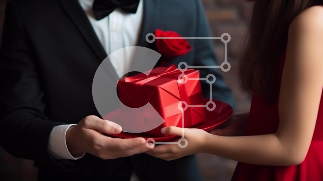 Intra Συλλεκτικό Ξύλινο Παζλ Plywood 4mm - Άνδρας που παρουσιάζει ένα κόκκινο κουτί δώρου σε μια γυναίκα την ημέρα του Αγίου Βαλεντίνου Σε Ξύλινο Κουτί - Διαστάσεις: 10x10 cm – 25 κομμάτια