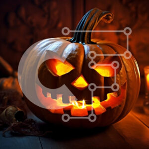 Intra Συλλεκτικό Ξύλινο Παζλ Plywood 4mm - Απόκοσμη διακόσμηση αποκριών: σκαλιστή κολοκύθα με τρομακτικό πρόσωπο και αναμμένο κερί Σε Ξύλινο Κουτί - Διαστάσεις: 10x10 cm – 25 κομμάτια