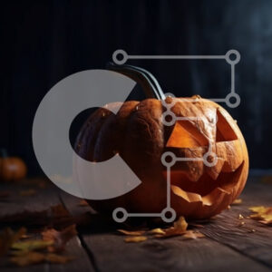 Intra Συλλεκτικό Ξύλινο Παζλ Plywood 4mm - Απόκοσμη διακόσμηση αποκριών: Σκαλιστή κολοκύθα με λαμπερό πρόσωπο σε ξύλινο τραπέζι Σε Ξύλινο Κουτί - Διαστάσεις: 10x10 cm – 25 κομμάτια