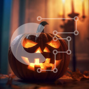 Intra Συλλεκτικό Ξύλινο Παζλ Plywood 4mm - Απόκοσμη εικόνα αποκριών μιας λαμπερής σκαλισμένης κολοκύθας με φανάρι Jack-o'-Lantern Σε Ξύλινο Κουτί - Διαστάσεις: 10x10 cm – 25 κομμάτια