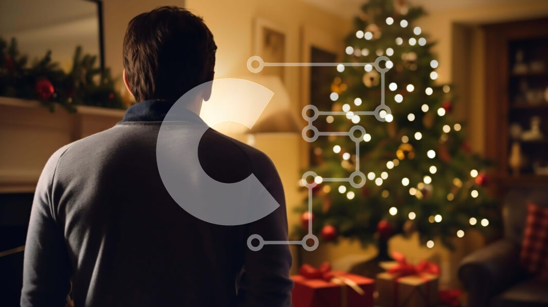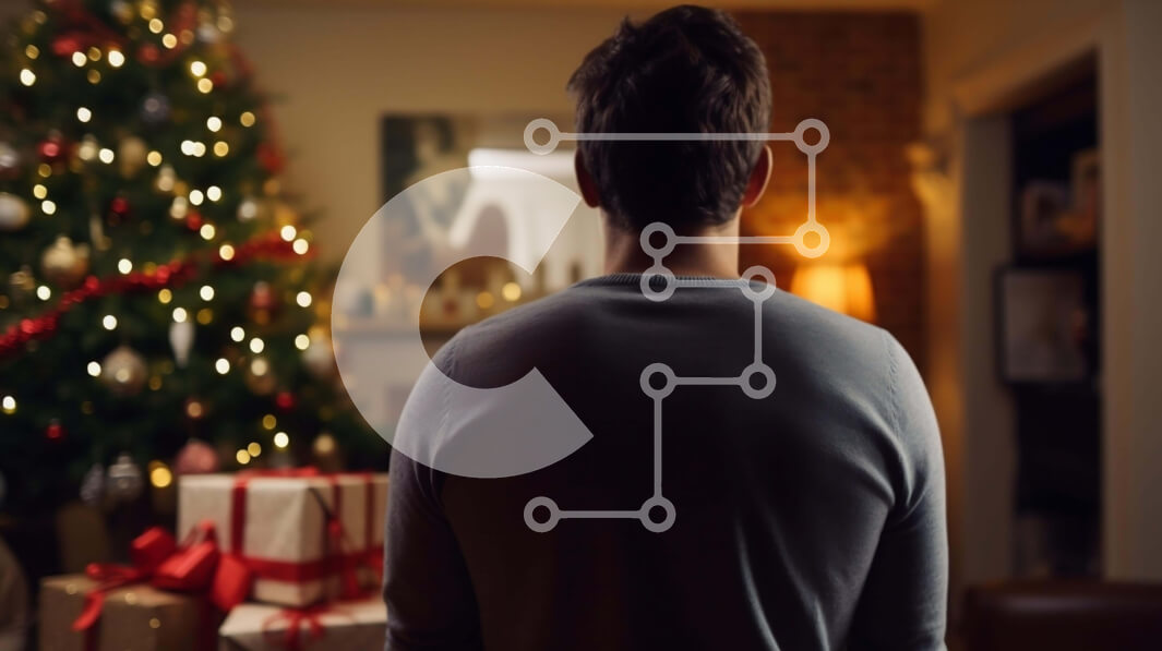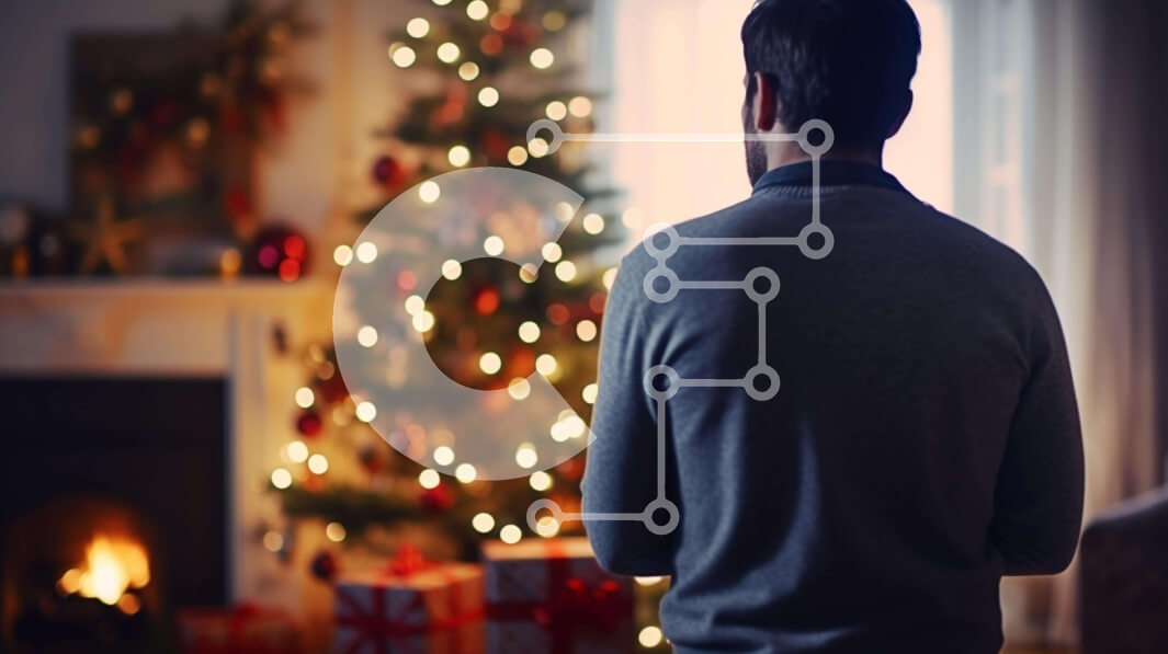 Intra Συλλεκτικό Ξύλινο Παζλ Plywood 4mm - Άτομο που απολαμβάνει την περίοδο των διακοπών μπροστά από ένα χριστουγεννιάτικο δέντρο Σε Ξύλινο Κουτί - Διαστάσεις: 10x10 cm – 25 κομμάτια