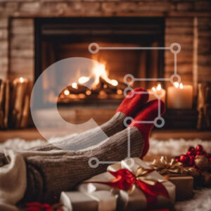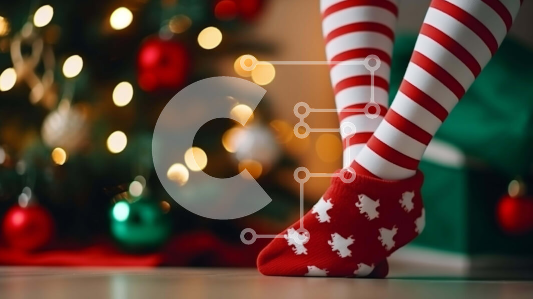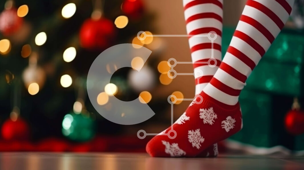 Intra Συλλεκτικό Ξύλινο Παζλ Plywood 4mm - Άτομο με κόκκινες και άσπρες ριγέ κάλτσες δίπλα σε ένα χριστουγεννιάτικο δέντρο Σε Ξύλινο Κουτί - Διαστάσεις: 10x10 cm – 25 κομμάτια