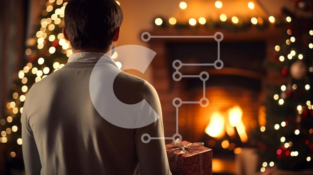 Intra Συλλεκτικό Ξύλινο Παζλ Plywood 4mm - Άτομο με εορταστική στολή που στέκεται μπροστά από το χριστουγεννιάτικο δέντρο Σε Ξύλινο Κουτί - Διαστάσεις: 10x10 cm – 25 κομμάτια