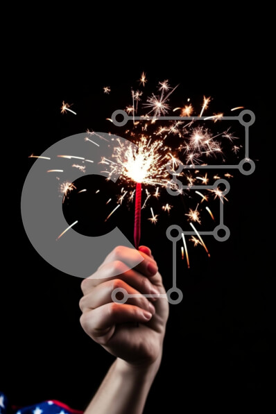 Intra Συλλεκτικό Ξύλινο Παζλ Plywood 4mm - Άτομο που κρατά βεγγαλικό εμπνευσμένο από την αμερικανική σημαία για τον εορτασμό της 4ης Ιουλίου Σε Ξύλινο Κουτί - Διαστάσεις: 10x10 cm – 25 κομμάτια