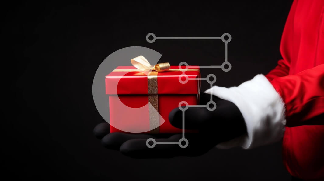 Intra Συλλεκτικό Ξύλινο Παζλ Plywood 4mm - Άτομο που κρατά διακοσμημένο κόκκινο κουτί δώρου με γάντια Άγιου Βασίλη Σε Ξύλινο Κουτί - Διαστάσεις: 10x10 cm – 25 κομμάτια