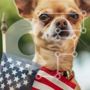 Intra Συλλεκτικό Ξύλινο Παζλ Plywood 4mm - Σκύλος που γιορτάζει την 4η Ιουλίου με αμερικανική σημαία Σε Ξύλινο Κουτί - Διαστάσεις: 10x10 cm – 25 κομμάτια