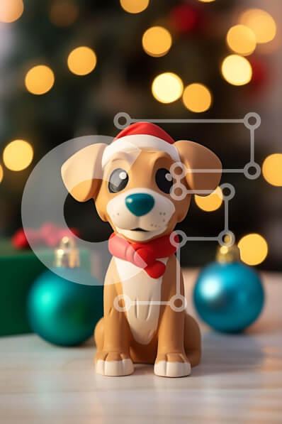 Intra Συλλεκτικό Ξύλινο Παζλ Plywood 4mm - Σκύλος παιχνίδι με καπέλο Santa σε διακοσμημένο ξύλινο τραπέζι Σε Ξύλινο Κουτί - Διαστάσεις: 10x10 cm – 25 κομμάτια