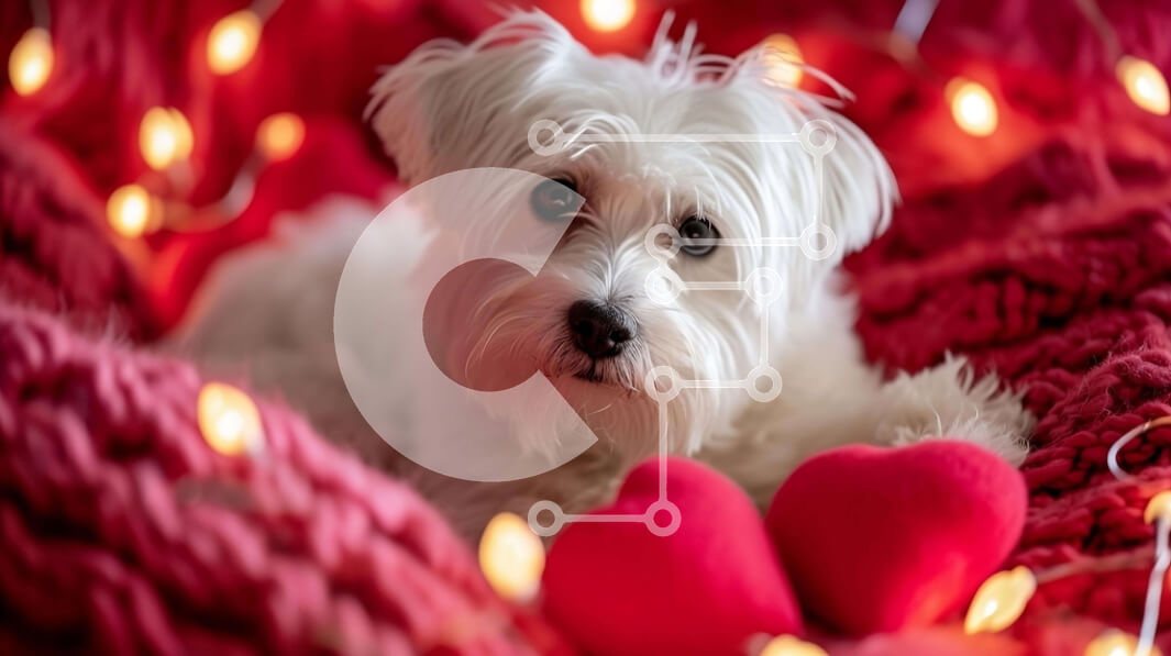 Intra Συλλεκτικό Ξύλινο Παζλ Plywood 4mm - Σκύλος που γιορτάζει την ημέρα του Αγίου Βαλεντίνου με μαξιλάρια σε σχήμα καρδιάς και πολύχρωμα φωτάκια Σε Ξύλινο Κουτί - Διαστάσεις: 10x10 cm – 25 κομμάτια