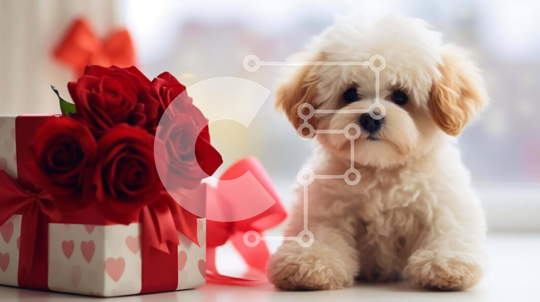 Intra Συλλεκτικό Ξύλινο Παζλ Plywood 4mm - Σκύλος του Αγίου Βαλεντίνου με κουτί δώρου και τριαντάφυλλα Σε Ξύλινο Κουτί - Διαστάσεις: 10x10 cm – 25 κομμάτια