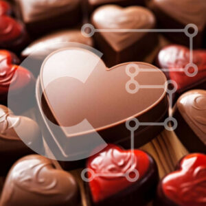 Intra Συλλεκτικό Ξύλινο Παζλ Plywood 4mm - Σοκολάτες σε σχήμα καρδιάς σε μωβ φόντο Σε Ξύλινο Κουτί - Διαστάσεις: 10x10 cm – 25 κομμάτια