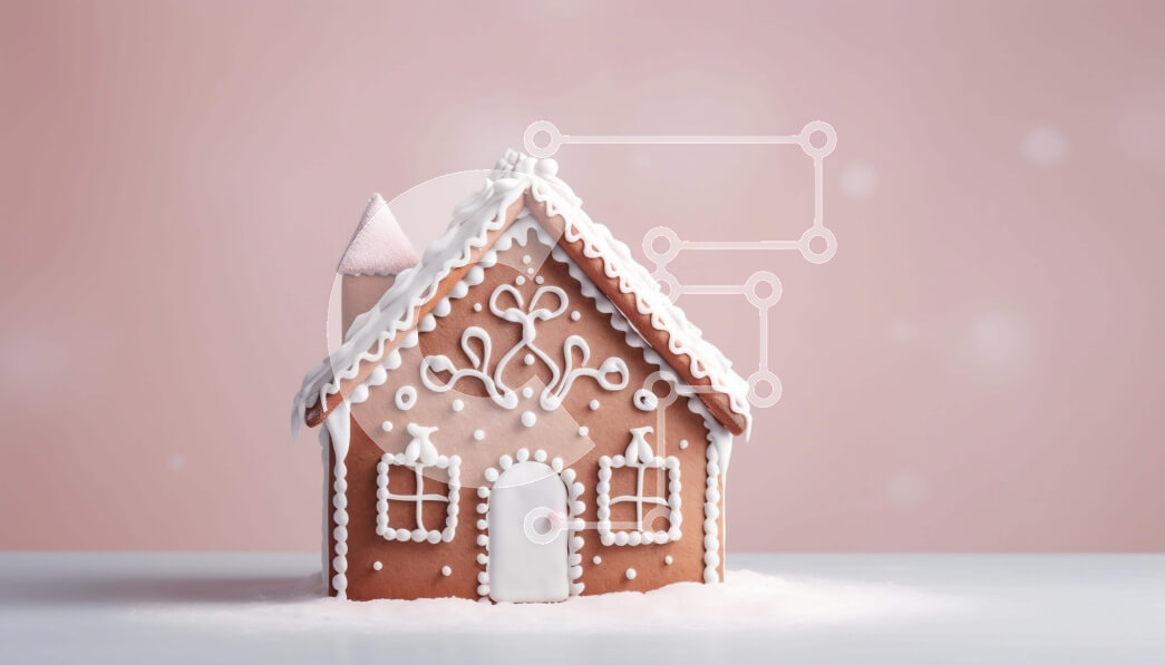 Intra Συλλεκτικό Ξύλινο Παζλ Plywood 4mm - Σπίτι με μελόψωμο με νιφάδες χιονιού σε μπλε φόντο Σε Ξύλινο Κουτί - Διαστάσεις: 10x10 cm – 25 κομμάτια