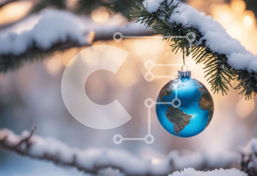 Intra Συλλεκτικό Ξύλινο Παζλ Plywood 4mm - Στολίδι μπλε σφαιρών που κρέμεται σε κλαδί δέντρου που καλύπτεται από χιόνι Σε Ξύλινο Κουτί - Διαστάσεις: 10x10 cm – 25 κομμάτια