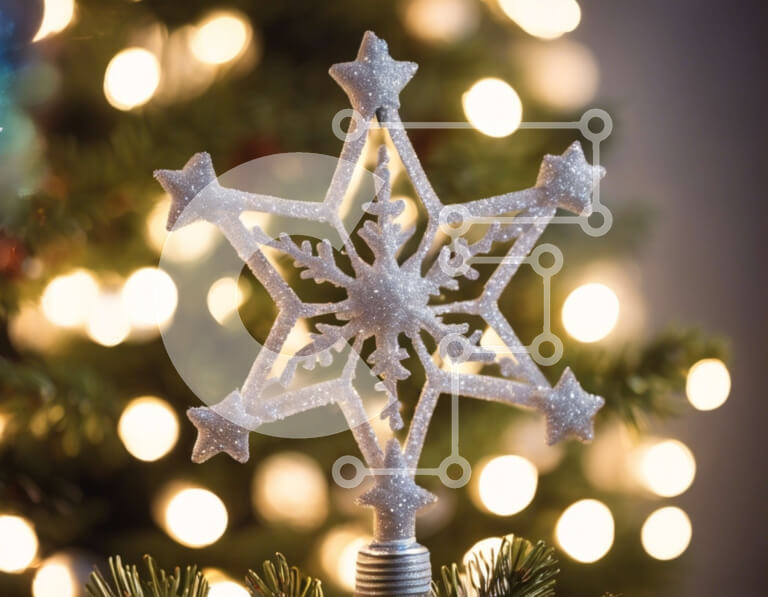 Intra Συλλεκτικό Ξύλινο Παζλ Plywood 4mm - Στολίδι νιφάδας χιονιού στο χριστουγεννιάτικο δέντρο με φωτεινές διακοσμήσεις Σε Ξύλινο Κουτί - Διαστάσεις: 10x10 cm – 25 κομμάτια