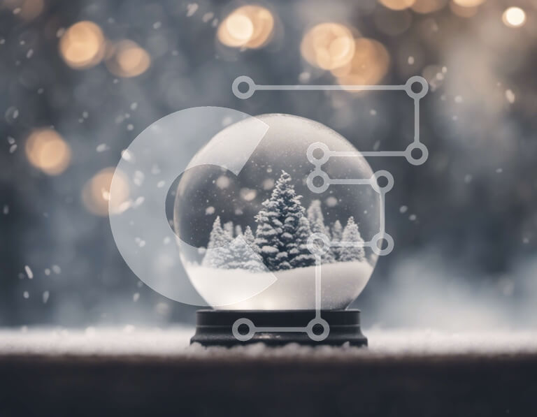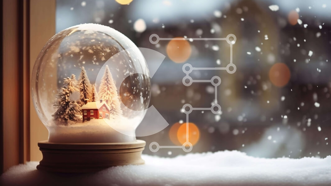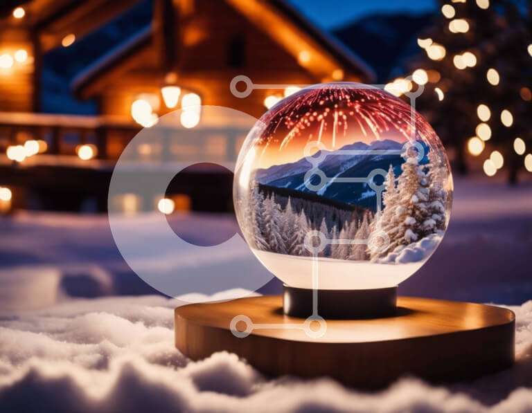 Intra Συλλεκτικό Ξύλινο Παζλ Plywood 4mm - Σφαίρα χιονιού με πεύκα σε διακοσμητικό ξύλινο τραπέζι Σε Ξύλινο Κουτί - Διαστάσεις: 10x10 cm – 25 κομμάτια