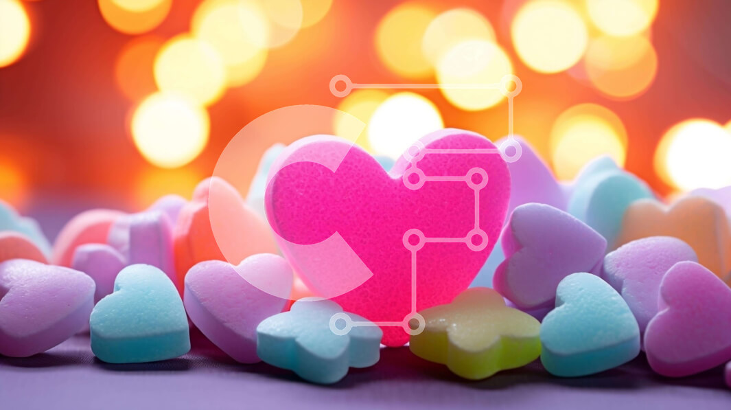 Intra Συλλεκτικό Ξύλινο Παζλ Plywood 4mm - Συστάδα από πολύχρωμες καραμέλες σε σχήμα καρδιάς για την ημέρα του Αγίου Βαλεντίνου Σε Ξύλινο Κουτί - Διαστάσεις: 10x10 cm – 25 κομμάτια